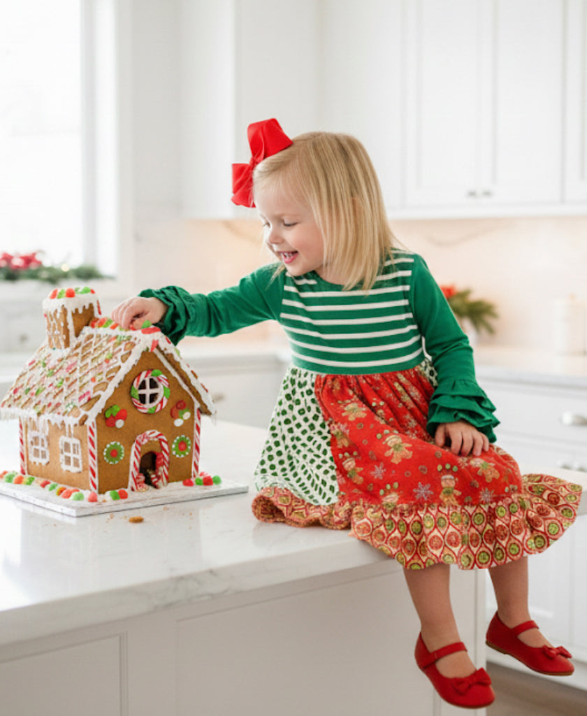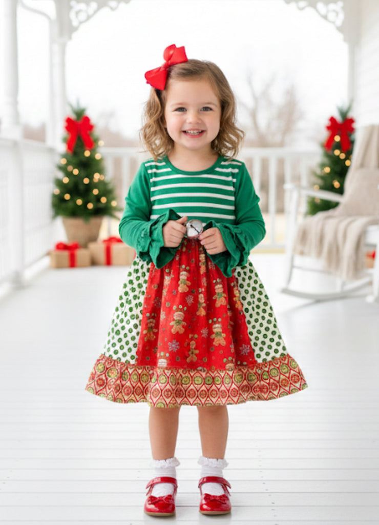 Appropriate for everyday wear. Dress this up or down with browns, blacks, boots, flats, & a fur vest. This is an A line style dress with a single ruffle on the bottom.  Hand designed from a delightful mix of prints that please & colors that pop.
