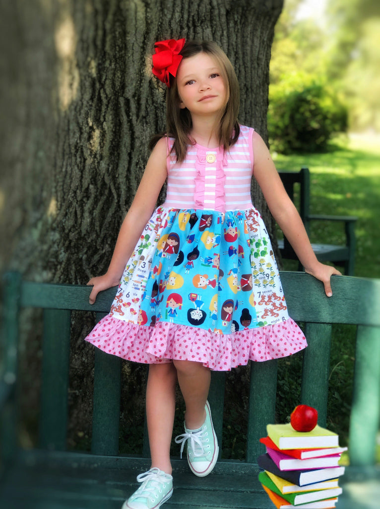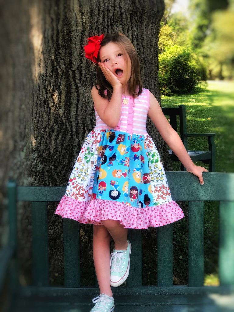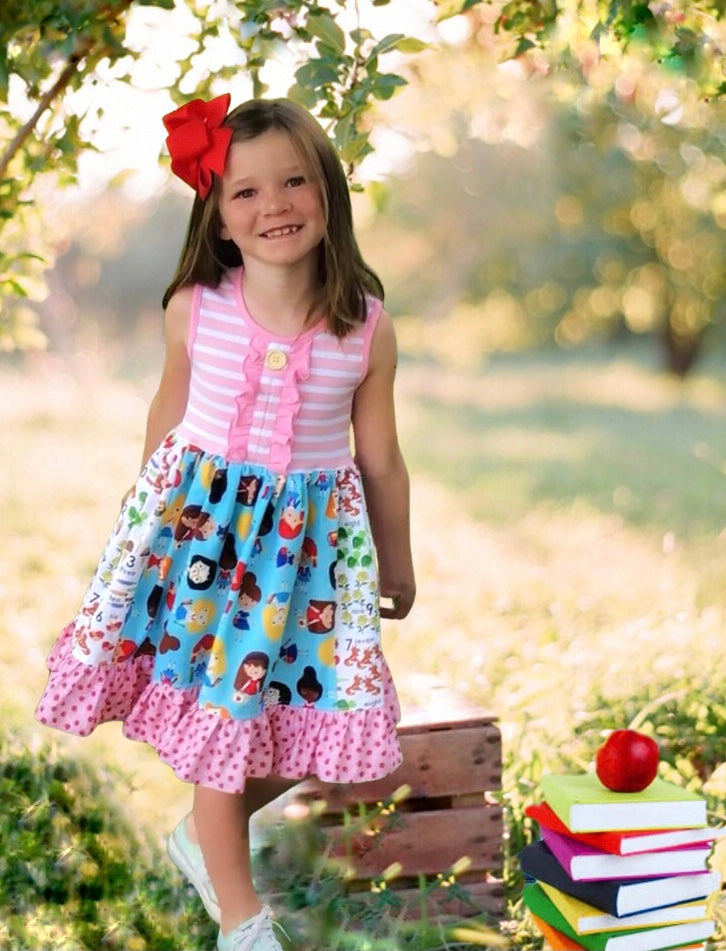 Get her excited about learning! She’ll be the talk of the town around in her Studious School Girl dress. The perfect mix of artistic prints to make her feel extra special & most importantly comfortable!