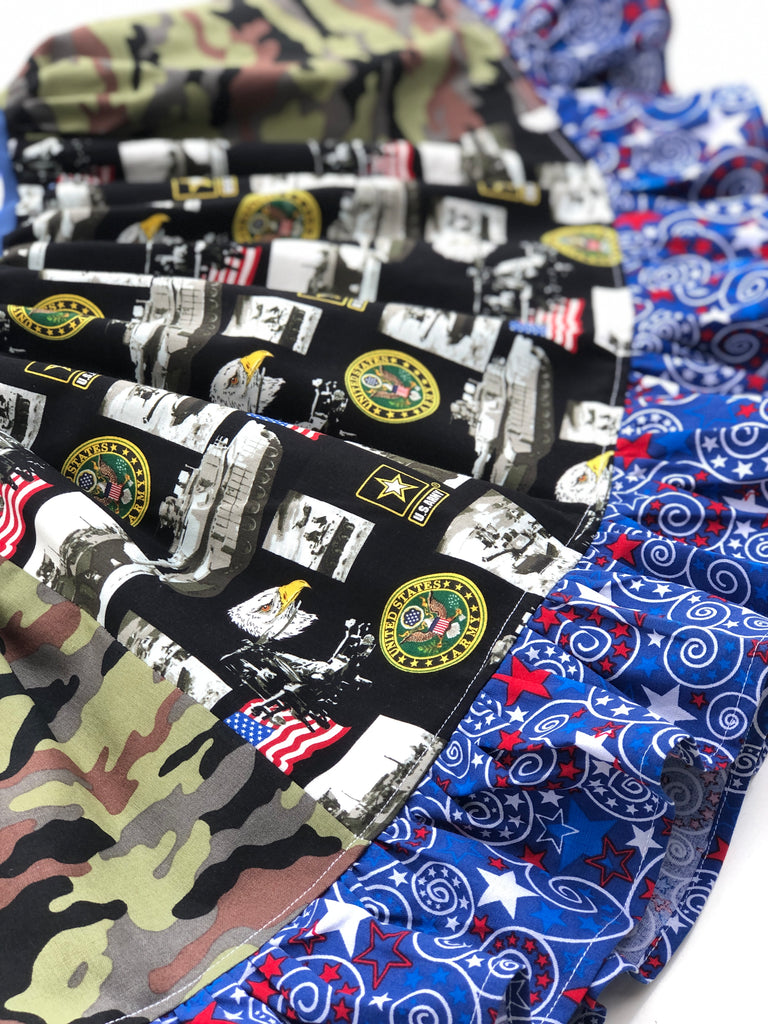 Make the special moments picture worthy in our new Military dress. Fashioned in our knit flutter sleeve style bodice & a cotton ruffle skirting, perfect for wowing the crowd! Hand designed from a delightful mix of prints that please & colors that pop. Great for Memorial Day, Fourth of July, parades, patriotic homecomings, military events, gift giving, theme parties, & everyday wear!