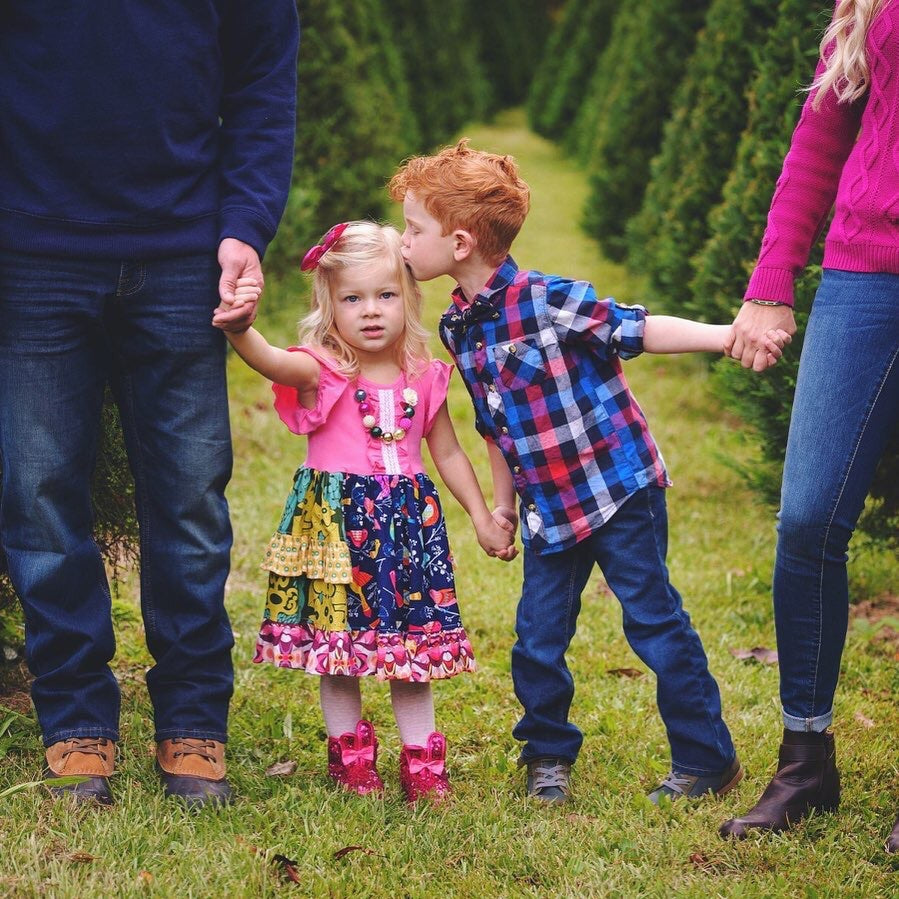 Give her day a pop of unexpected color in Our Navy Bird Platinum Party style dress.  Fashioned in our knit flutter style bodice & a cotton full ruffle skirting, perfect for wowing the crowd. Custom designed from a delightful mix of prints that please & colors that pop. Great for year round wear & layering for cool weather! Everyday outings, birthday parties, portraits, & special events will be that much more fun when she can frolic & twirl in her unique & special dress.