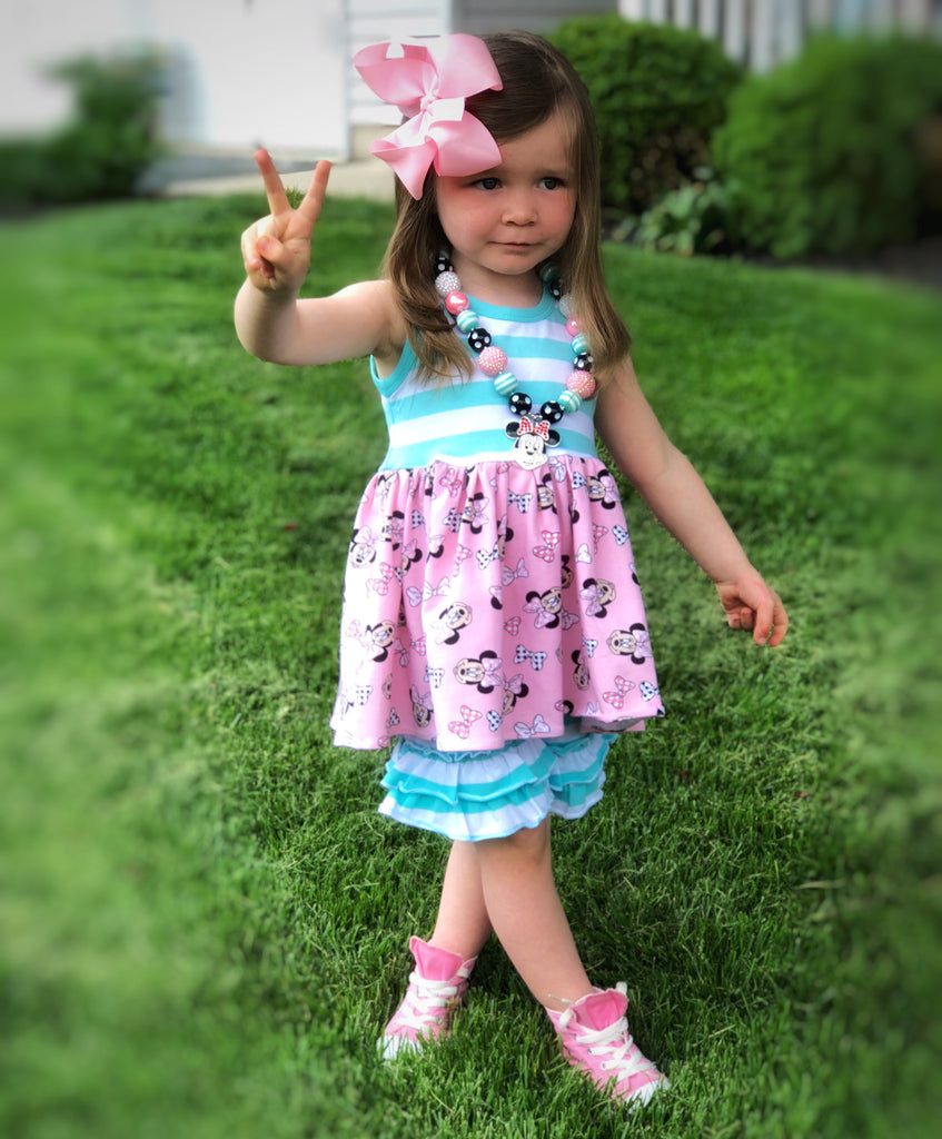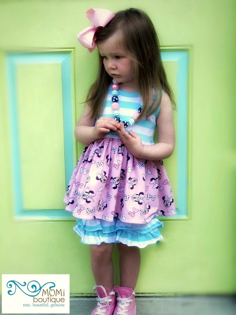 It’s a Wipe out that you don’t want to miss! Our Minnie Mouse set is fully knit & designed for your queen of comfort! Perfect for lounge days at the park is fashioned in knit aqua/white tank style bodice & a comfy knit skirting, perfect for wowing the crowd! Hand designed from a delightful mix of prints that please & colors that pop. Perfect for looking extra cute at the parks, parties, & everyday wear!