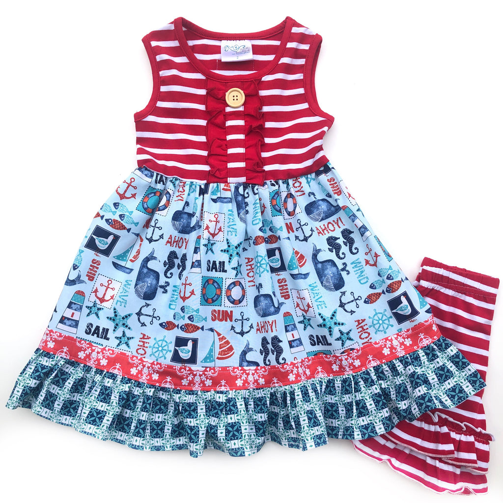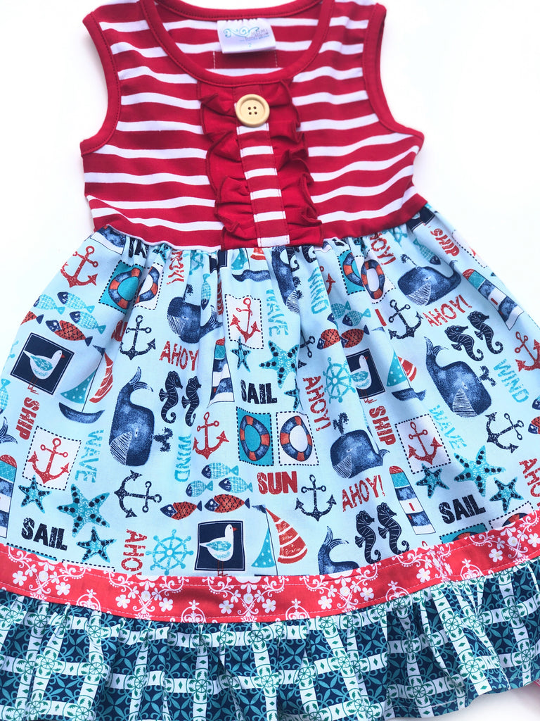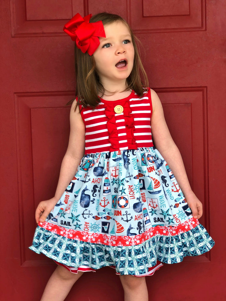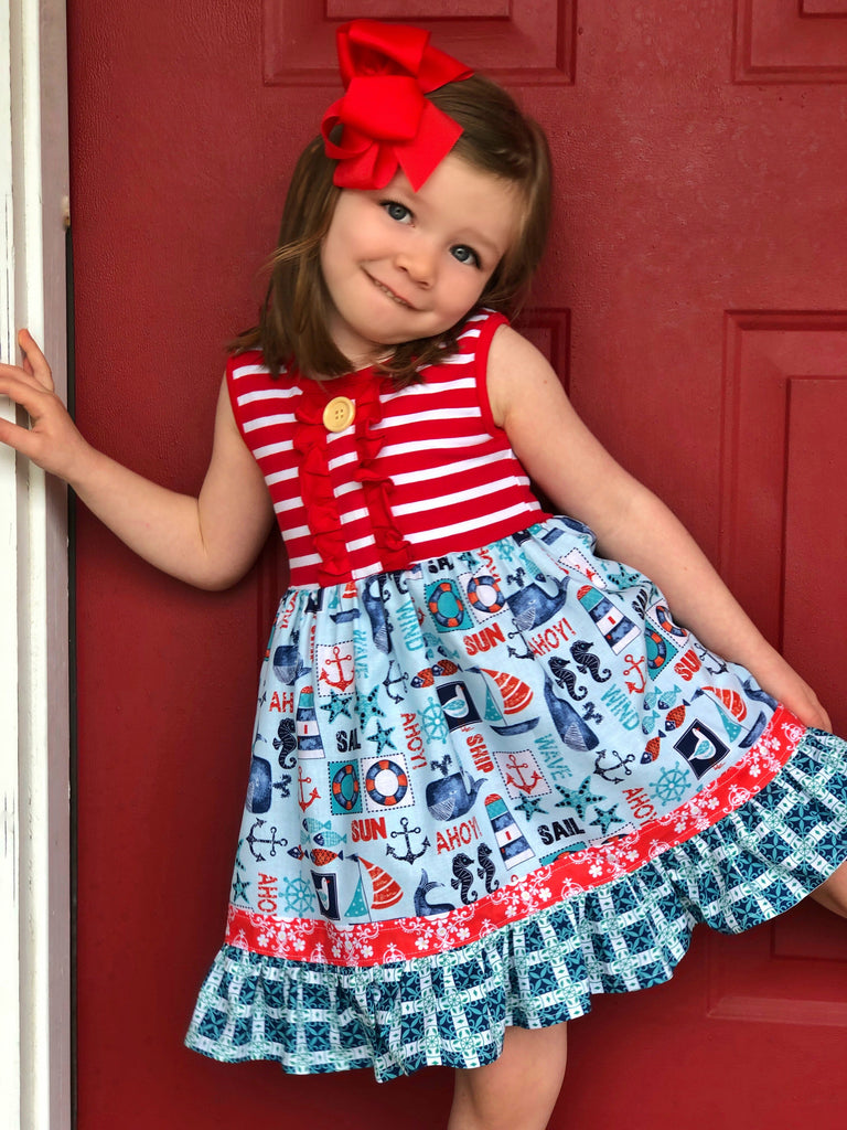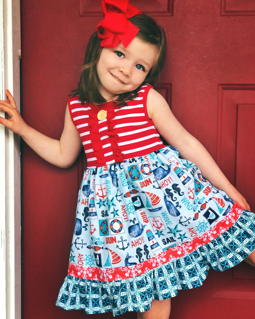 Our Coastal Beach is fashioned in our knit tank style bodice & a cotton A line ruffle skirting, perfect for wowing the crowd! Custom designed from a delightful mix of prints that please & colors that pop. Great for theme parties, beach vacations, portraits, & everyday wear!