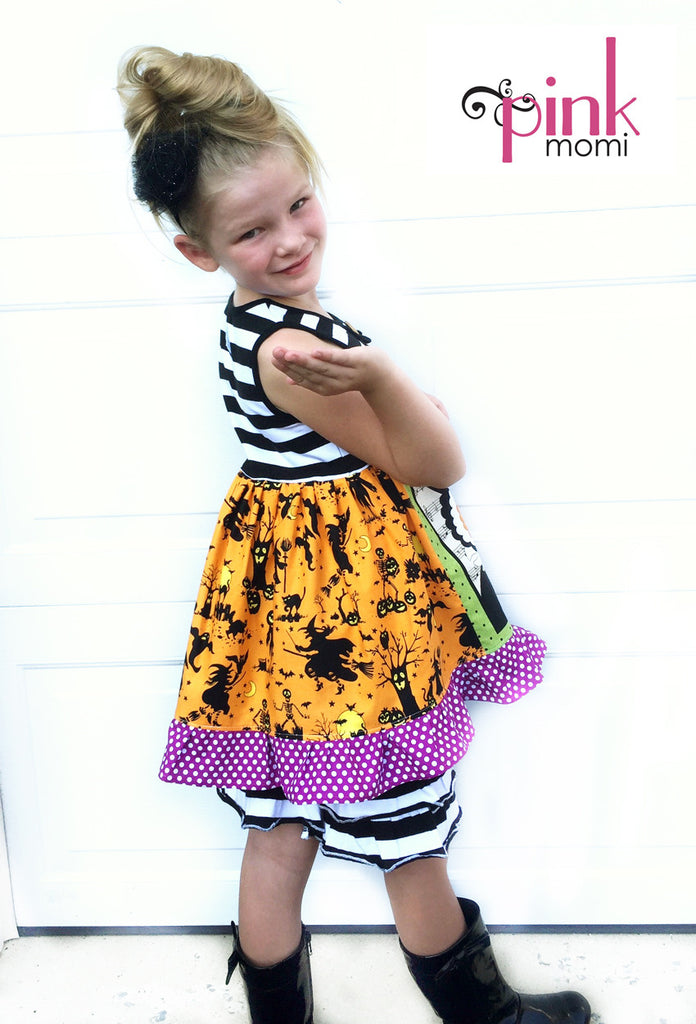 Spooktacular - SKULL *purchasing options can be found in the drop down menu* swing top length: 4/5: 19" swing top 6/7: 22" swing top 8: 23" swing top dress length: sz 12/18mo: 17" 2/3: 21" 4/5: 24" 6/7: 26" Knit chest width unstretched: sz 12mo: 20" 2: 22.5" 4: 23.5" 6: 25" 8: 27"